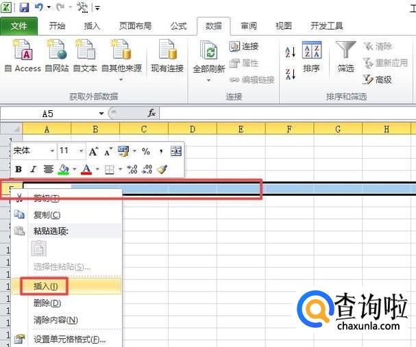 然后我们选中第5行,然后右击选择插入;