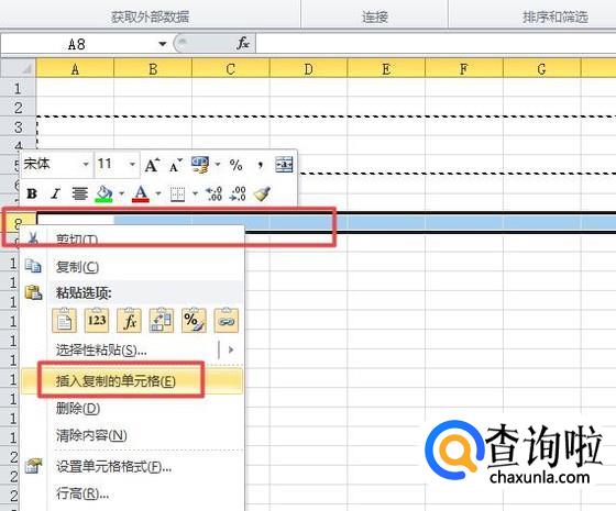 然后我们选择另外的行,右击选择插入复制的单元格;