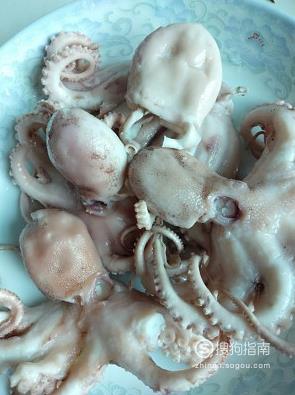 小八爪鱼买来,先清洗,洗干净,切好备用。