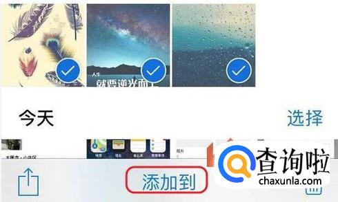 返回到照片列表中,点击右上角的“选择”,然后选中对应的旅行照片点击页面下方的“添加到”,然后勾选刚才创建的相簿即可,这样以后找起来就容易多了;