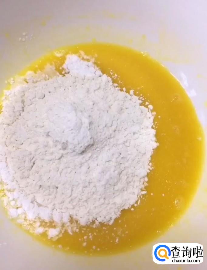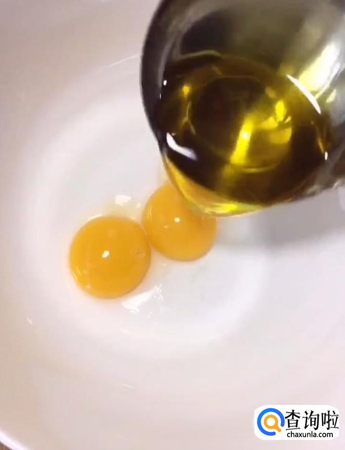 蛋黄中加入20g食用油,30g牛奶,15g白糖搅拌均匀