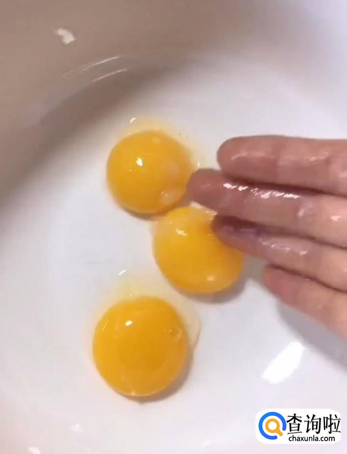 首先,我们将三个鸡蛋的蛋清蛋黄分离,分别放入两个无油无水的容器中