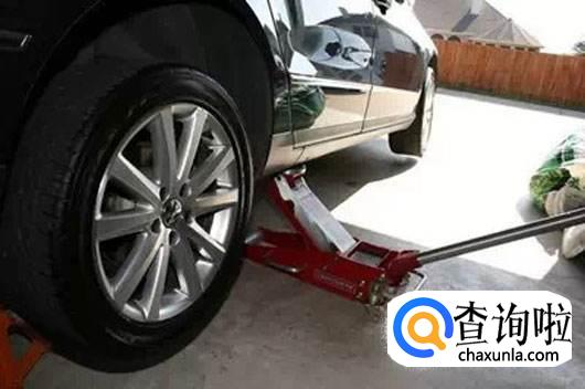 首先把车停在平整路面,轮胎方向朝正前方。然后举升一边车身拆下轮子,轮子放在车身下方起保险作用。