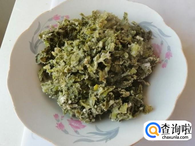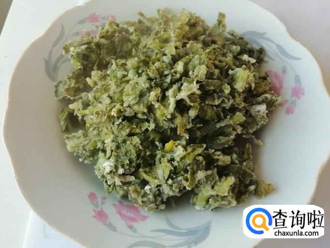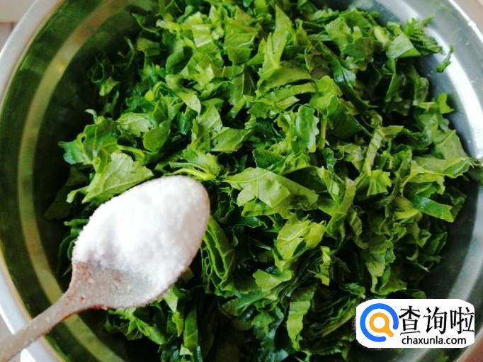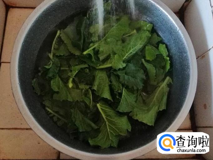 取新鲜的萝卜叶子,用清水把萝卜叶子洗净,萝卜叶子要多洗几遍,因为叶子上容易藏泥土,把洗净的萝卜叶子控水后,切碎待用。