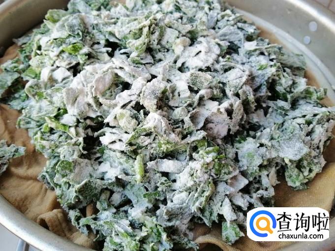 取适量干面粉待用。喜欢吃蒸菜面多的,可以多备些干面粉,不喜欢的就少备一些,根据自己喜好准备量。