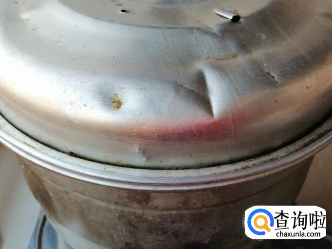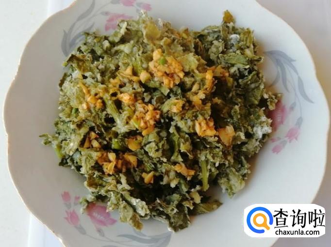 大火上气十分钟后,蒸菜就熟了,打开锅盖,把蒸好的萝卜叶子蒸菜,盛入盘中待用。