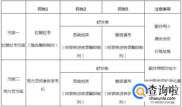 整合酶方案的副作用比较少,可能会偶发皮疹,但几率非常小;克力芝方案的副作用相对要大一些,偶发皮疹,但以消化道症状(如恶心、呕吐、乏力、厌食等)为主;依非韦伦方案除了会带来头痛、头晕等不舒服,我国还有约7%~8%的人有原发耐药,限制较多一些。