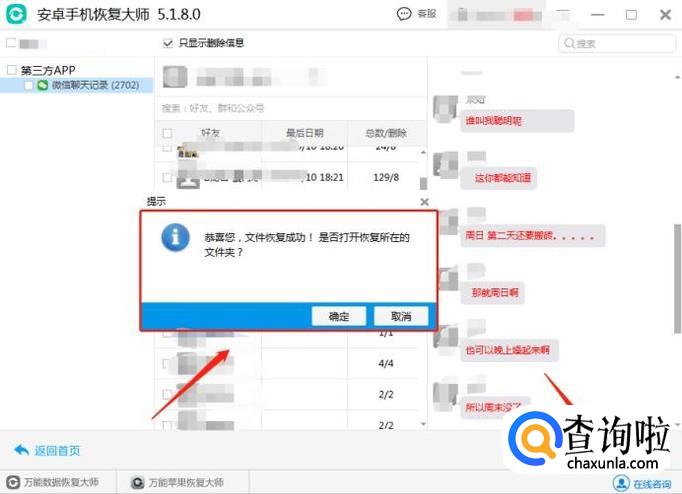 从中查到需要的聊天记录,找到后选中恢复就可以了。