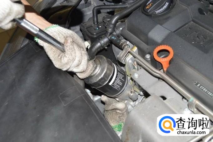 首先我们为了安全起见,一定要将汽车的发动机停止工作,然后用扳手拧下废旧的或者损坏的滤清器。