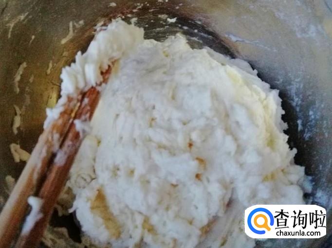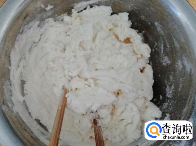 取适量干面粉,加入适量清水,用筷子搅拌均匀,喜欢吃硬疙瘩的把面调成面团,喜欢吃软疙瘩的就把面调稀点,如图所示调好面团待用。