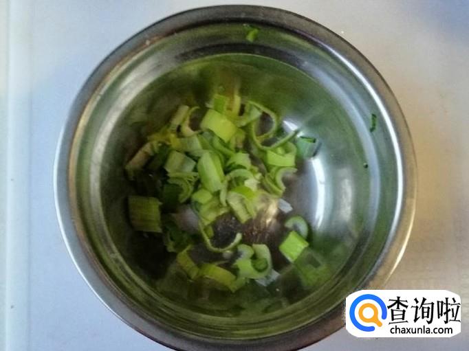 取适量新鲜的青葱,用清水把葱洗净,用刀切成葱花待用。葱花是用来炝锅提味的,少量就可以了。