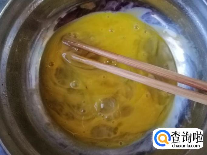 取一个新鲜的鸡蛋,用清水把鸡蛋洗净,以免蛋壳上有细菌,洗净后把鸡蛋磕入碗中,用筷子把鸡蛋打散待用。