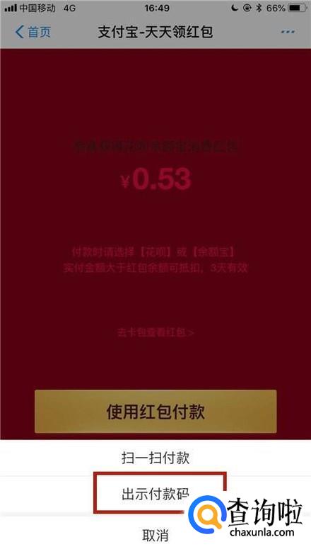支付宝扫码红包怎么用