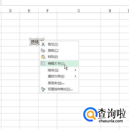 这时,表格上即插入了一个按钮。鼠标右击此按钮,在弹出的菜单中再点编辑文字。