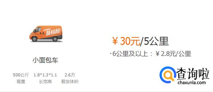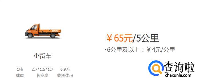 小货车:65元/5公里,超过6公里及以上4元/公里。