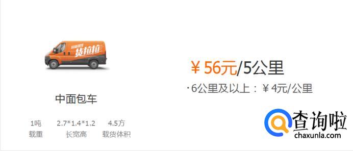 中面包车:56元/5公里,超过6公里及以上4元/公里。