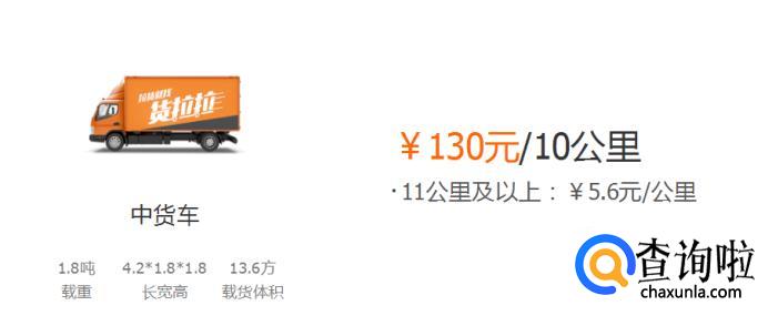 中货车:130元/10公里,超过11公里及以上5.6元/公里。