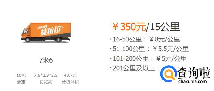 7米6的车:350元/15公里。