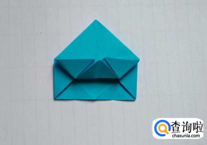 将折上去的三角形沿中缝打开并向下压折成正方形(第一图),然后把正方形的上层向上折(第二图),再把中间的小三角也折上去(第三图)。