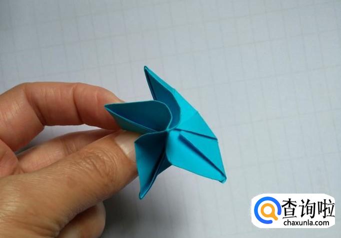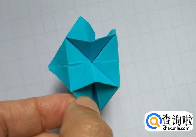 翻过折纸,用左手捏住底部,然后用右手捏住折纸上面的尖角旋转,玫瑰花就折好了。