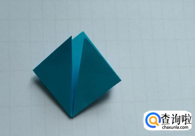 另一面也按上面第三步折好,然后把折纸上层的左侧翻向右侧,下层的右侧翻向左侧。