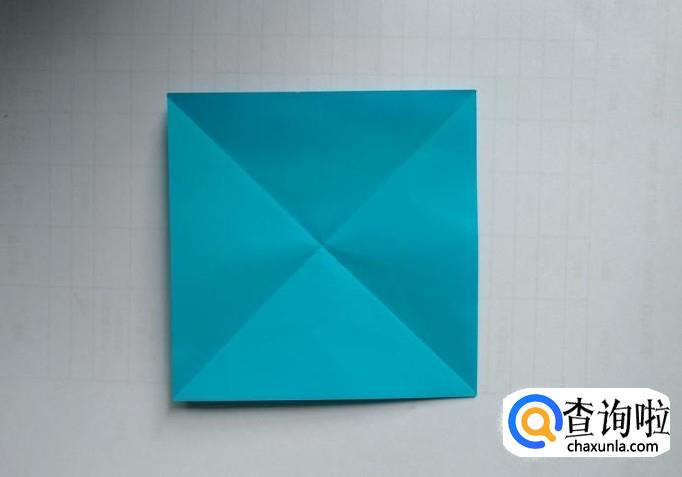 先将正方形纸沿对角线对折后打开(第一图),然后利用折痕折成双三角形(第二图)。