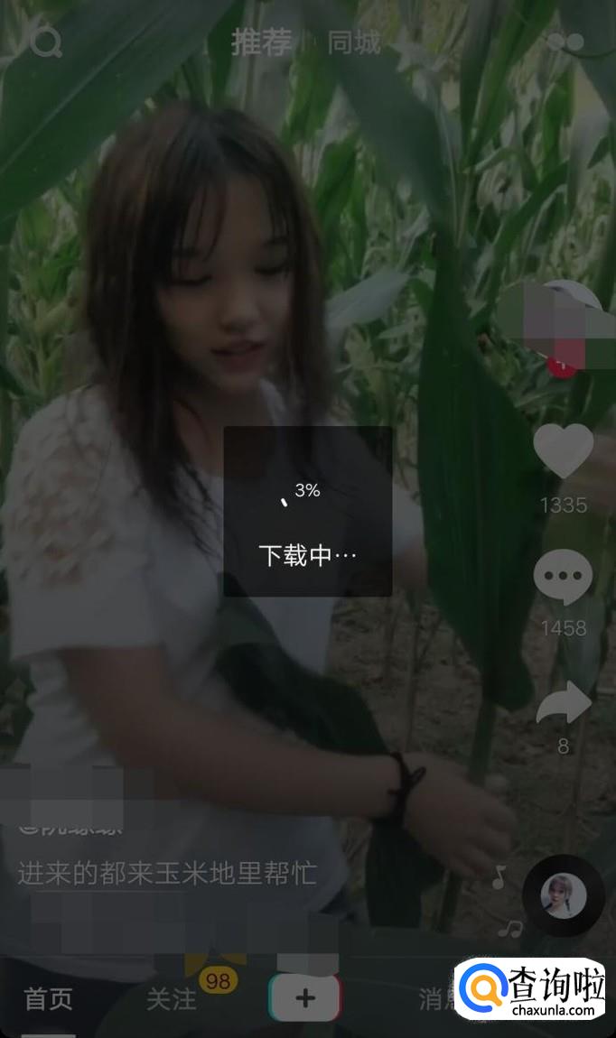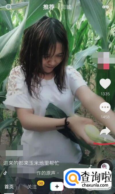 打开抖音小视频,然后选择一个好玩的视频点击分享,如图所示。