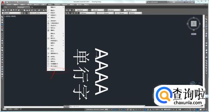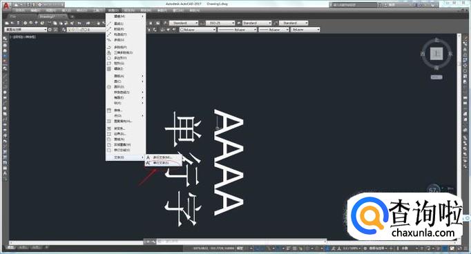 单击标题栏上的“绘图”选项卡,选择“文字选项卡”。如图所示。