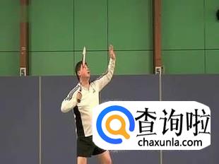 正手发高远球,右手正手握拍儿,掌心向前,左手将羽毛球从额前位置放下,然后右手迅速出击,将羽毛球从下往上向前推出去。