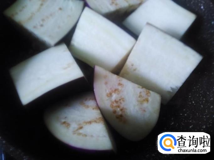然后把茄瓜铲上碟子。【茄瓜炸的非常蓉烂了,所以铲的时候要小心点】