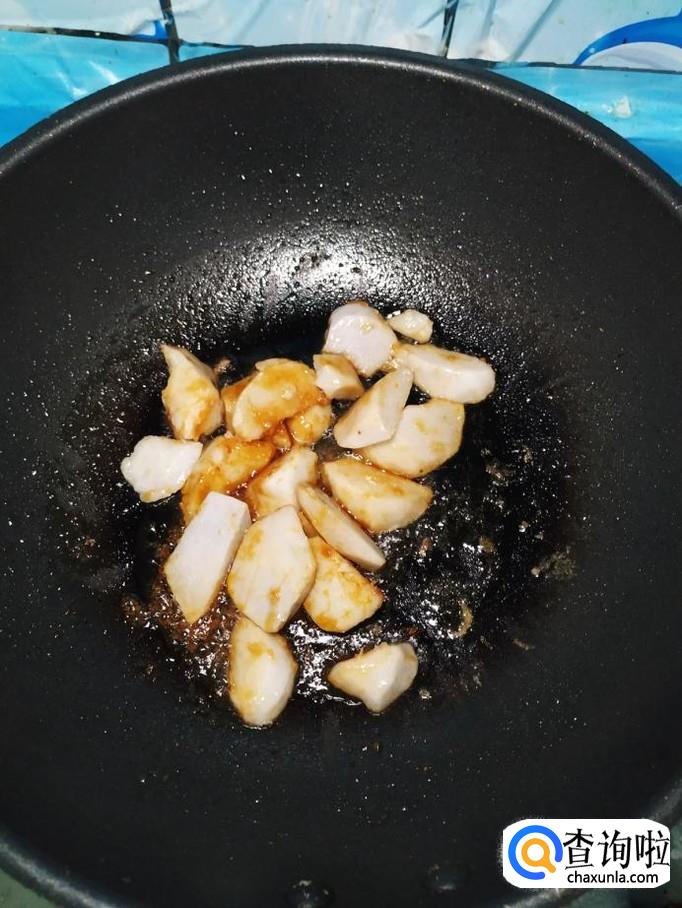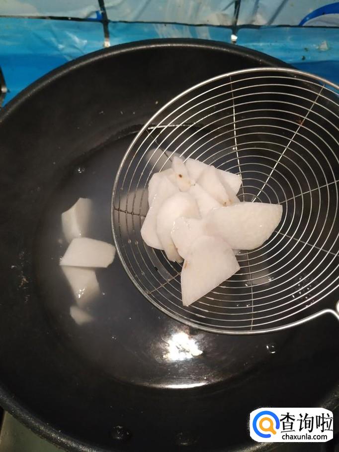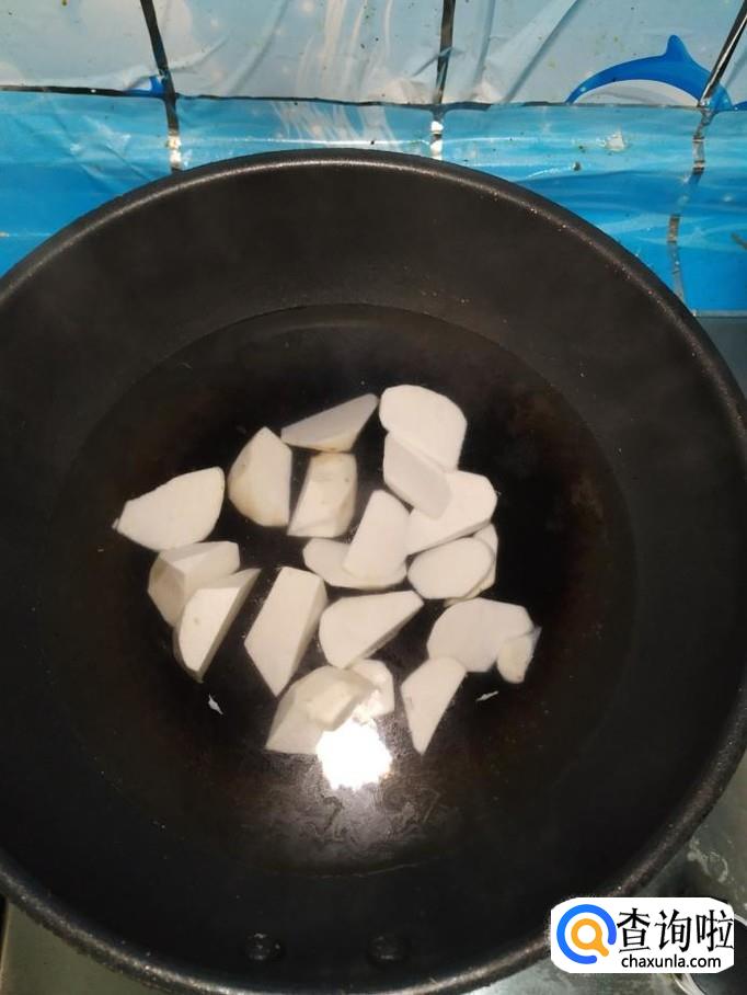 锅中烧开水,水开后将芋头放入锅中煮一下,煮至八成熟捞出备用。