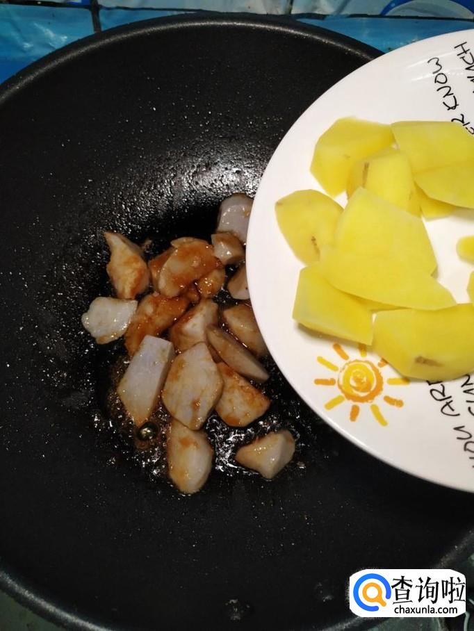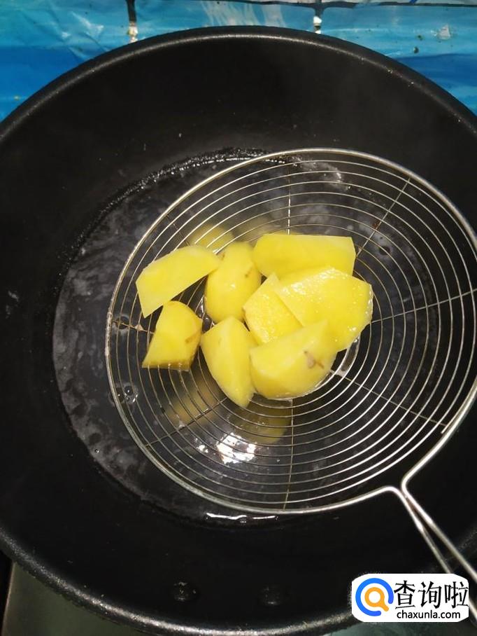 将土豆也放入锅中煮一下,煮至八成熟捞出备用。