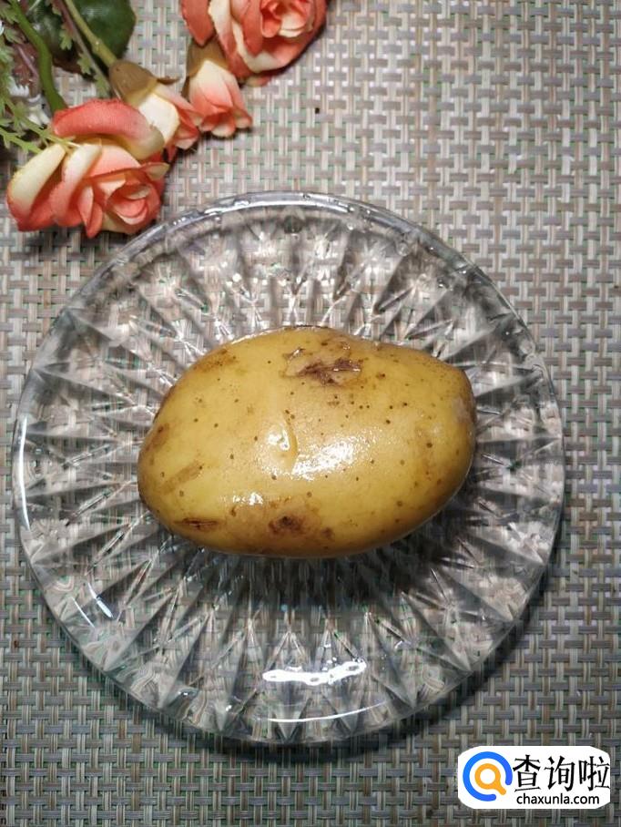 准备适量土豆,洗净后去除外皮,切成滚刀块,洗去淀粉,放入盘中备用。