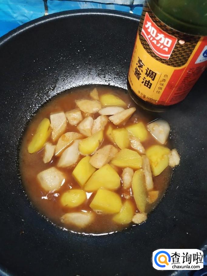 加入适量鸡精,生抽,老抽,盐,慢慢的将汤汁收一下。