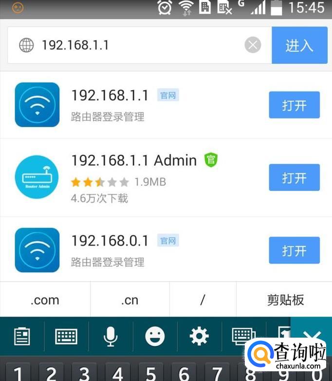 打开手机浏览器,在网址栏输入路由器的IP地址,点“进入”。