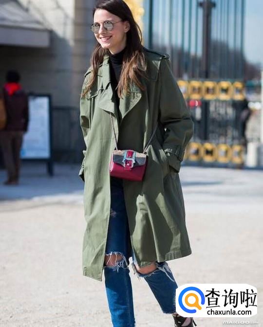 高个子女生可以尝试这种长款过膝的风衣,显得人十分高挑又随意,配上破洞牛仔裤是不是很oversize呢?