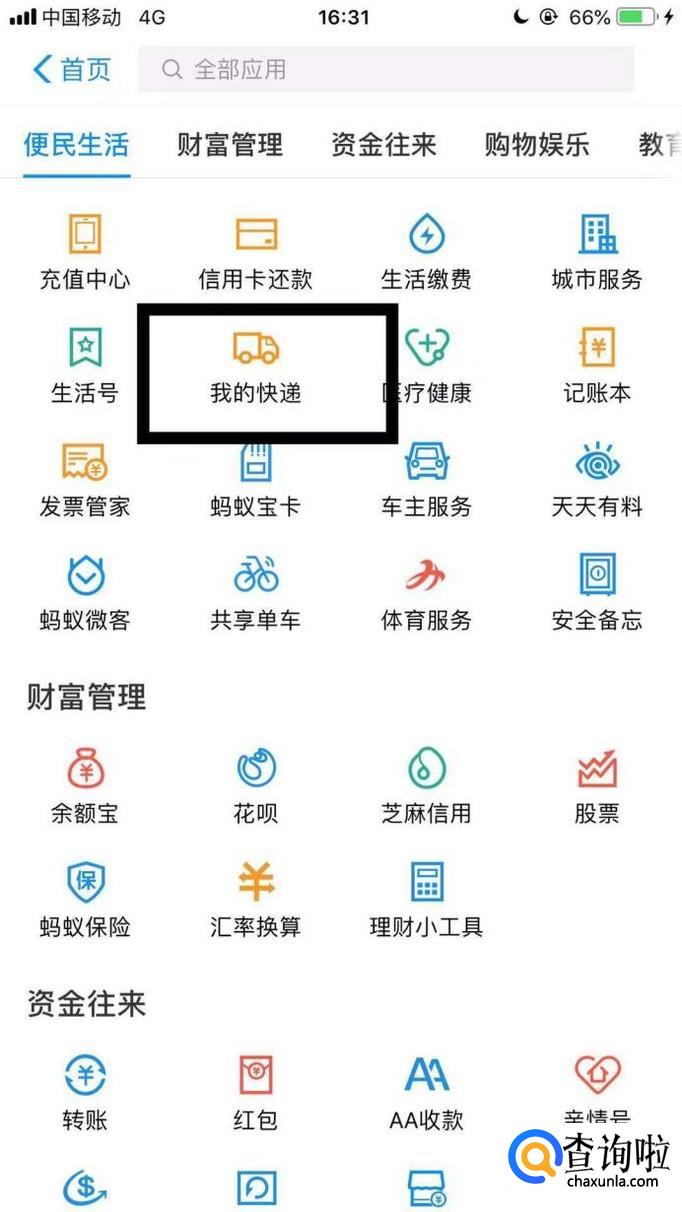 接着点击我的快递,如下图所示。