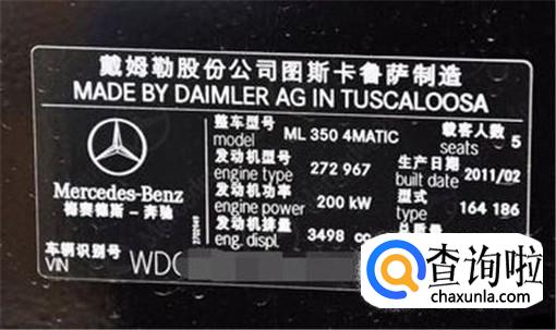 汽车铭牌上也会写明汽车排量是多少,我们可以从这上面得知汽车的具体信息,比如下方的图片显示该车的排量是3498cc。