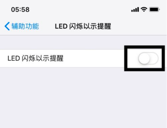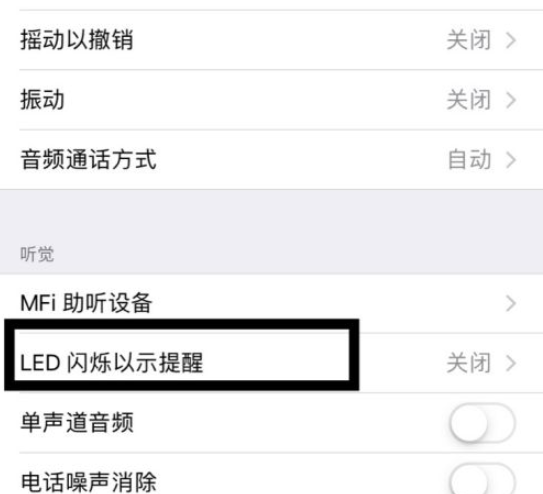 4、在辅助功能里面找到【LED灯闪烁以示提醒】。