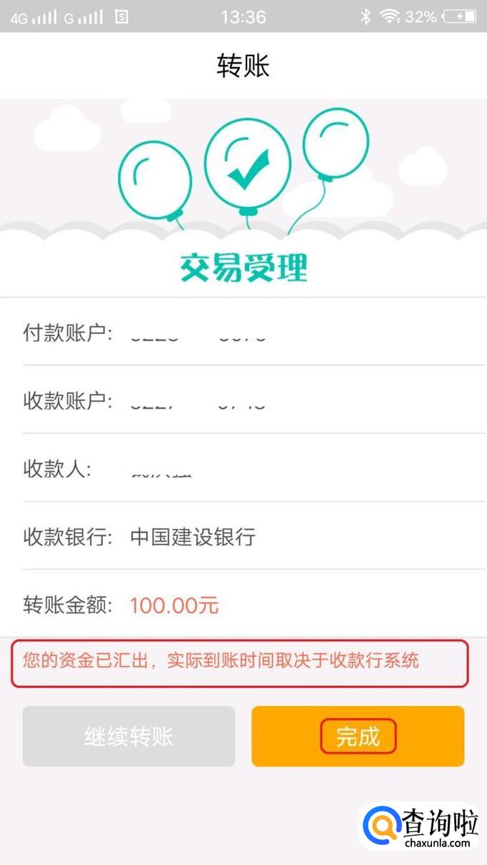 密码输入完毕后,验证通过,转账就成功了,转账成功后会有提示页面。