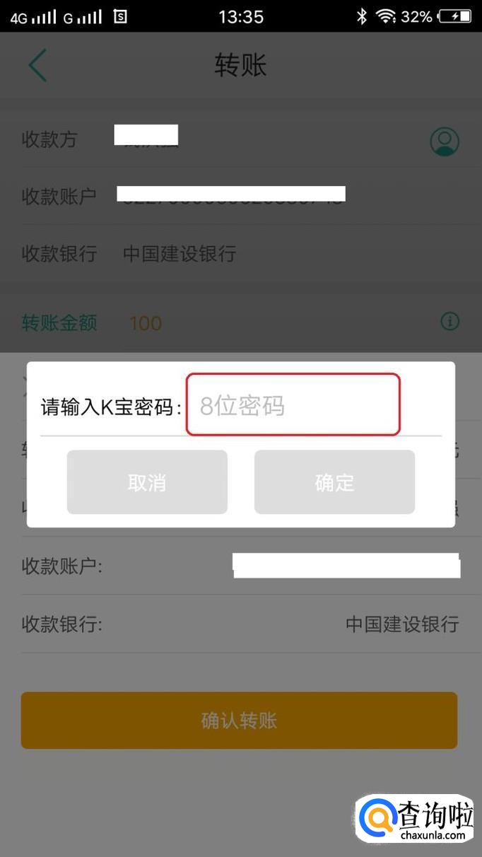 我们核对信息无误后,按K令上的“OK”键,此时,手机屏幕上就要求输入K令密码。
