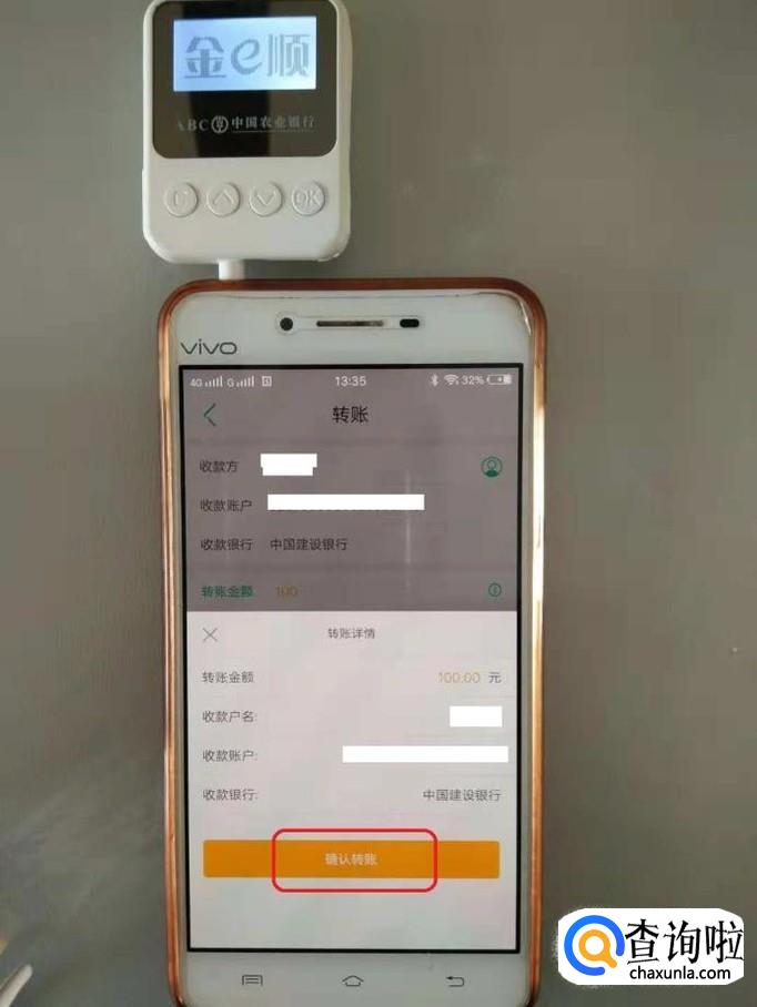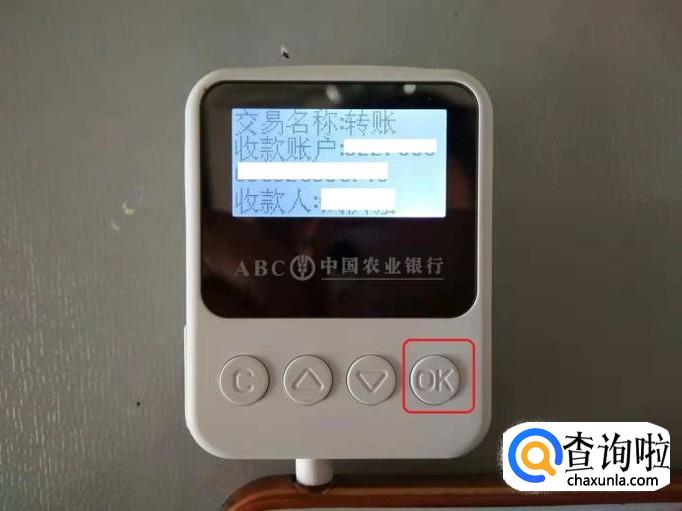 此时,我们需要把K令插入手机,如图所示,然后点击“确认转账”后,K令上会有核对信息。