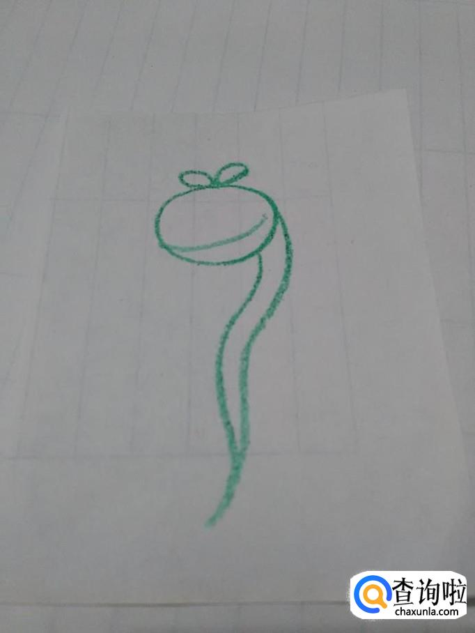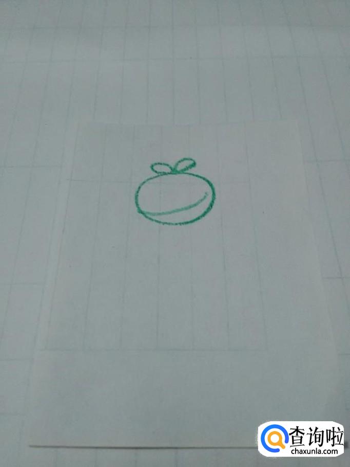 先用绿色彩笔在纸上画一个椭圆形,表示一颗豆子。