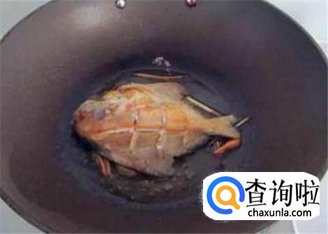锅里倒油烧热,把葱姜蒜放进去爆香,然后放入小鲳鱼,让小鲳鱼两面煎的有些干才可以。
