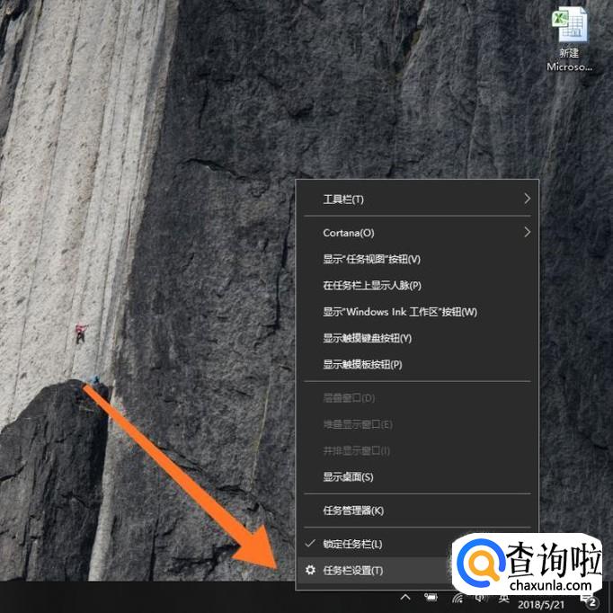 首先鼠标右击任务栏,点击进入“任务栏设置”。