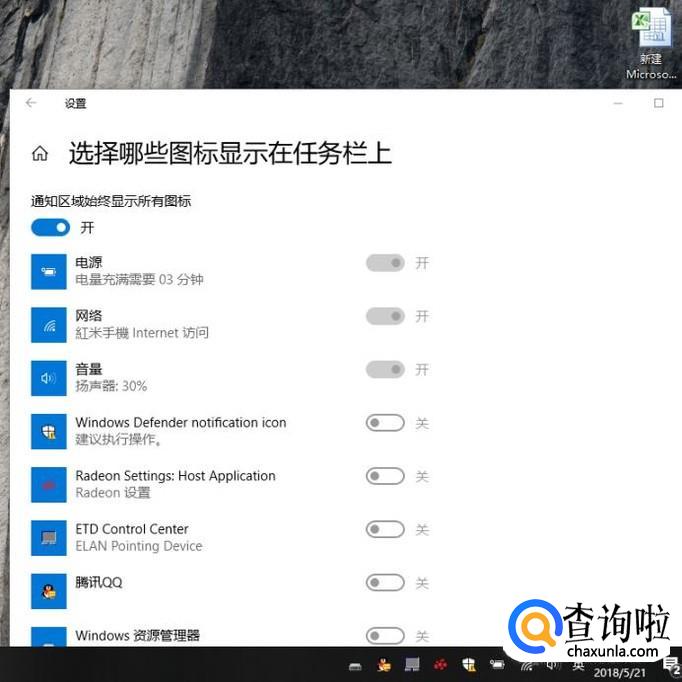 设置完成之后,任务栏就显示了所有的系统通知图标。
