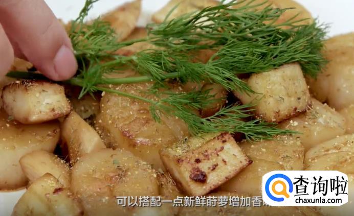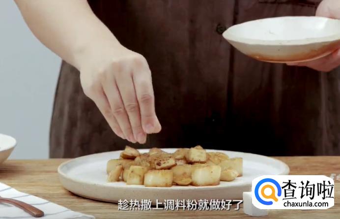 这样就可以起锅了,将元贝和杏鲍菇装盘,再趁热撒上调料粉,这道杏鲍菇煎烤元贝就做好了。可以在上面搭配一点新鲜莳萝增加香味。