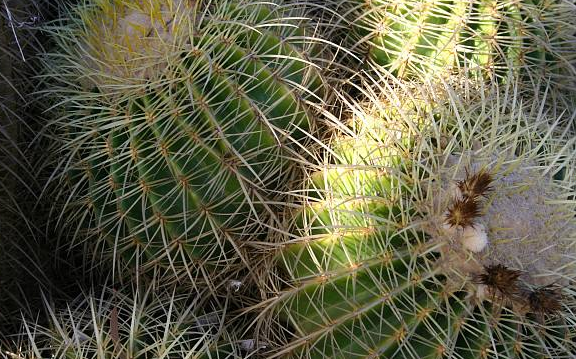 现阶段不少仙人掌的刺变成了其他形态,有的变成了白色的茸毛,密披在植株表面,能够反射强烈的光照,起到降低体表温度的作用,同时也大大减少了水分的流失,能够使得植株体内贮存大量的水分。此外,仙人掌刺的数量、形状、排列、颜色等变化多样,既有着独特的观赏性,同时也成为了我们鉴别仙人掌种类的一大重要依据。