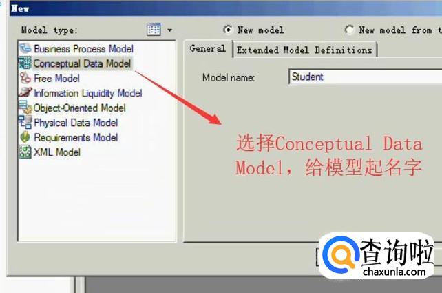 接下来在弹出的New界面中选择Conceptual Data Model选项,接着给模型起名字,如下图所示