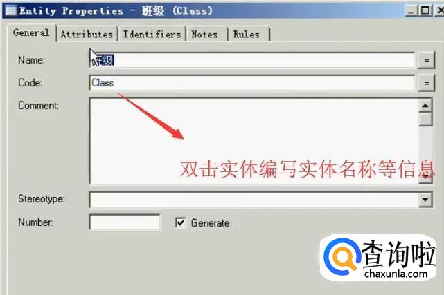 接下来双击实体,在弹出的实体内容编辑界面中首先给实体填写名称等信息,如下图所示